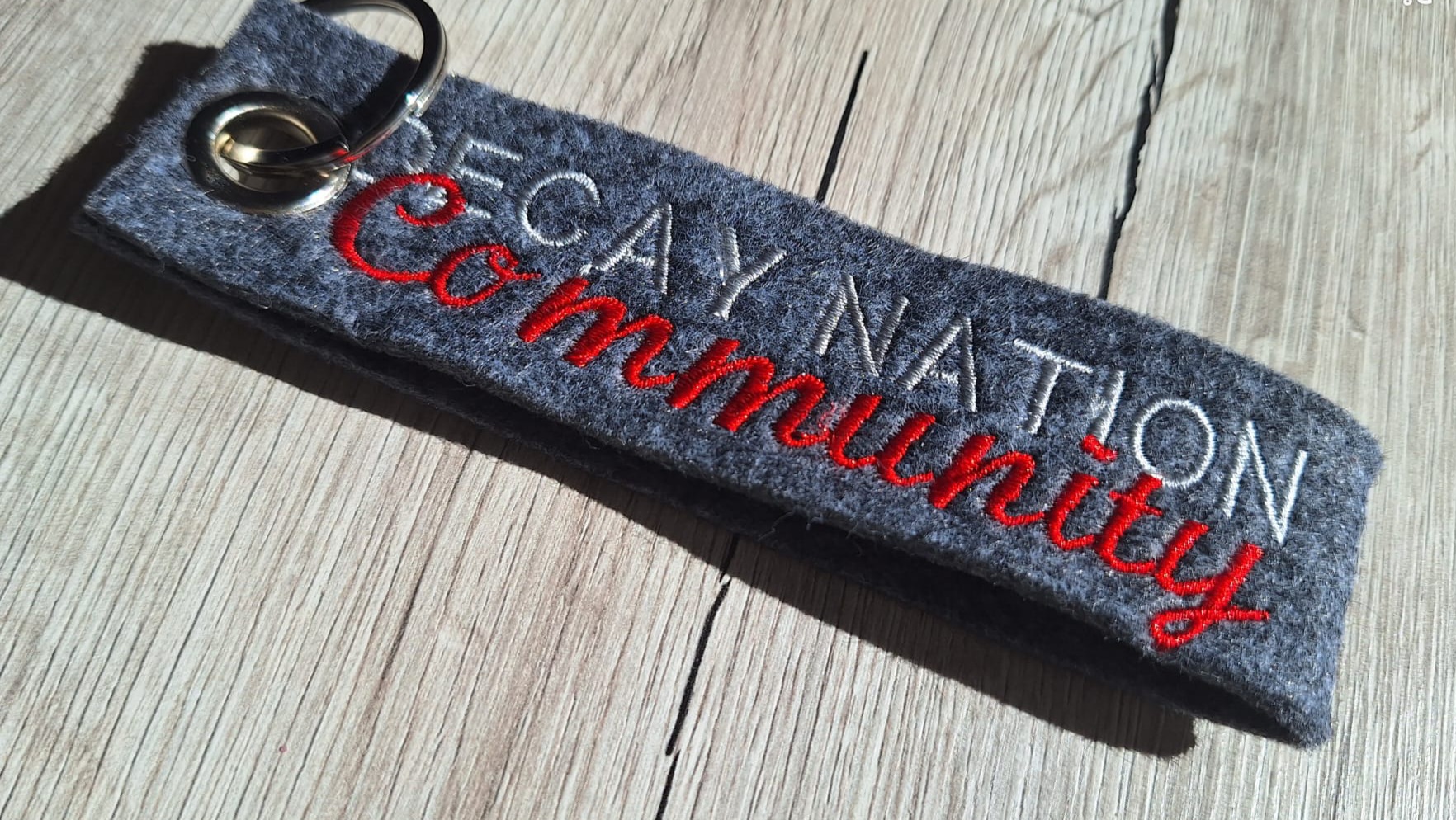 Unser treuer Fan und Teammitglied Markus hat exklusive Schlüsselanhänger für die Decay Nation entworfen. Diese können direkt bei Markus erworben werden. Bitte beachtet, dass der Verkauf der Schlüsselanhänger nicht über die Decay Nation erfolgt sondern über das Gewerbe vom Markus. Markus bietet zudem die Möglichkeit an, die Anhänger nach Ihren Wünschen zu personalisieren.
